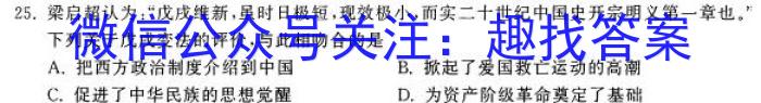 25.认为:“戊戌维新,虽时日极短,现效极小,而实二十世纪中国史开宗明义第一章也。”下列关于的评价,与此相吻合的是A.把介绍到中国B.掀起了爱国救亡运动的高潮C.促进了中华民族的思想觉醒D.为资产阶级革命莫定了基础